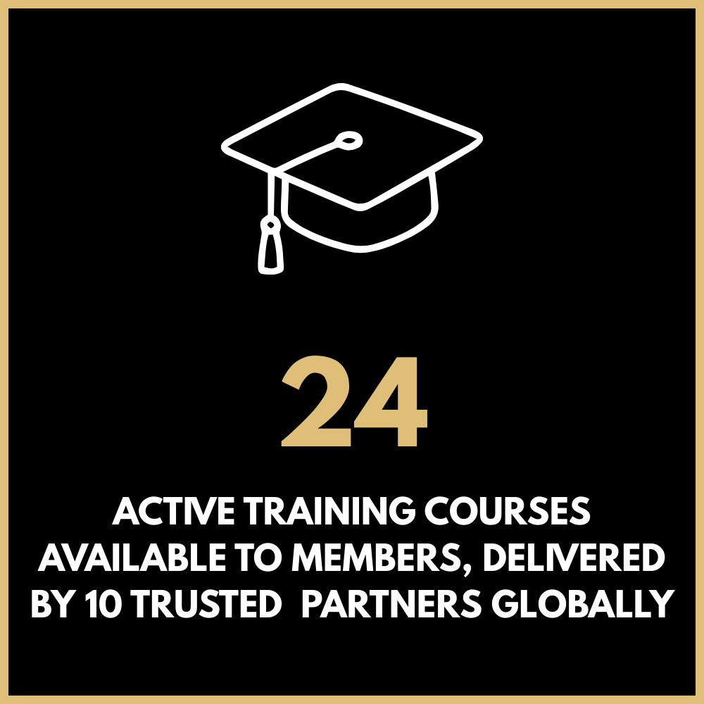 Members currently have access to 24 active training courses, delivered by 10 trusted training partners globally.